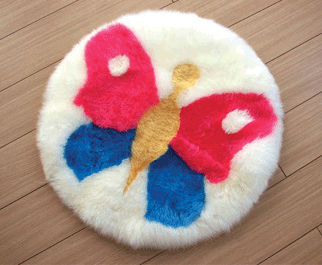 Коротко: «Ковер детский из овчины Бабочка круглый » (Bowron, Bowron) — ковер для детской, комнаты. материал: натуральная овчина, стиль: в современном стиле, цвет: разноцветный, ворс: 120 мм, основа: джутовая, подходит для современного интерьера, страна производства: Новая Зеландия.
