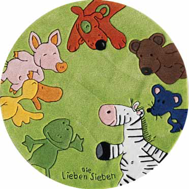Коротко: «Ковер детский ручной работы Die Lieben Sieben 2195-01 круг» (Boing Carpet, Boing Carpet) — ковер для детской, комнаты. материал: полиакрил (ПАН), стиль: детский, цвет: разноцветный, ворс: 10 мм, плотность: 400000 точек/м², основа: джутовая, подходит для детского интерьера, страна производства: Германия.