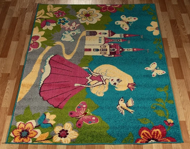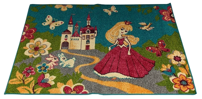 Коротко: «Ковер детский с ПРИНЦЕССОЙ FUNKY NEL turquoise» (Funky, Agnella) — ковер для детской, комнаты. материал: полипропилен, стиль: детский, цвет: разноцветный, ворс: 8 мм, плотность: 256000 точек/м², основа: джутовая, подходит для детского интерьера, страна производства: Польша.