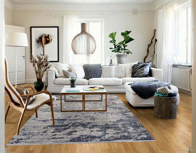 Если в комнате уже много акцентов, лучше выбирать более спокойные оттенки. Если интерьер нейтральный, ковер может стать заметной частью общей композиции.