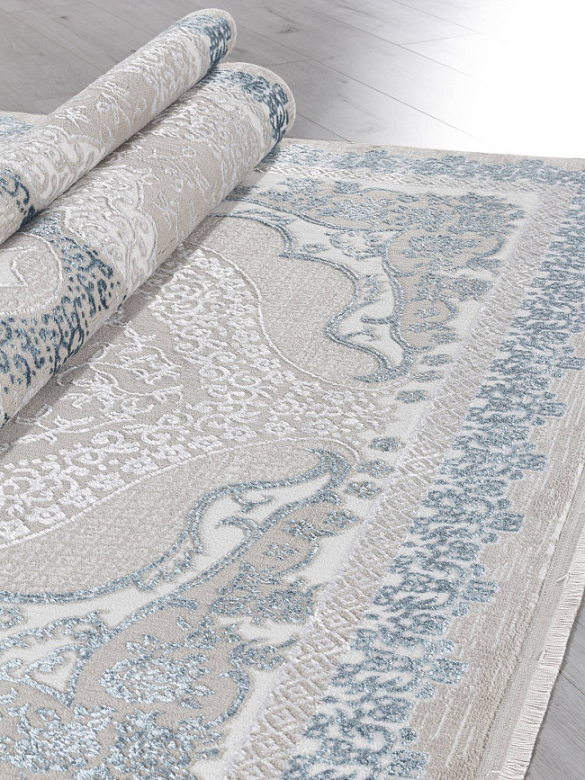 Коротко: «Ковер EFSAN Q010A CREAM SHRINK / BLUE FDY» (EFSAN, ARDA, Турция) — ковер для дома, гостиной. материал: полипропилен + Полиэстер, стиль: в классическом стиле, цвет: кремовый, голубой, ворс: 8 мм, плотность: 320000 точек/м², основа: хлопок, ориентирован на классическую подачу, страна производства: Турция.