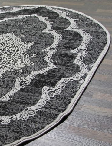 Коротко: «Ковер Elite 23091 090 Овал» (Elite, MERINOS, Турция) — ковер для дома, гостиной. материал: полиэстер, стиль: в классическом стиле, цвет: черный, серый, ворс: 12 мм, плотность: 624000 точек/м², основа: джутовая, ориентирован на классическую подачу, страна производства: Турция.