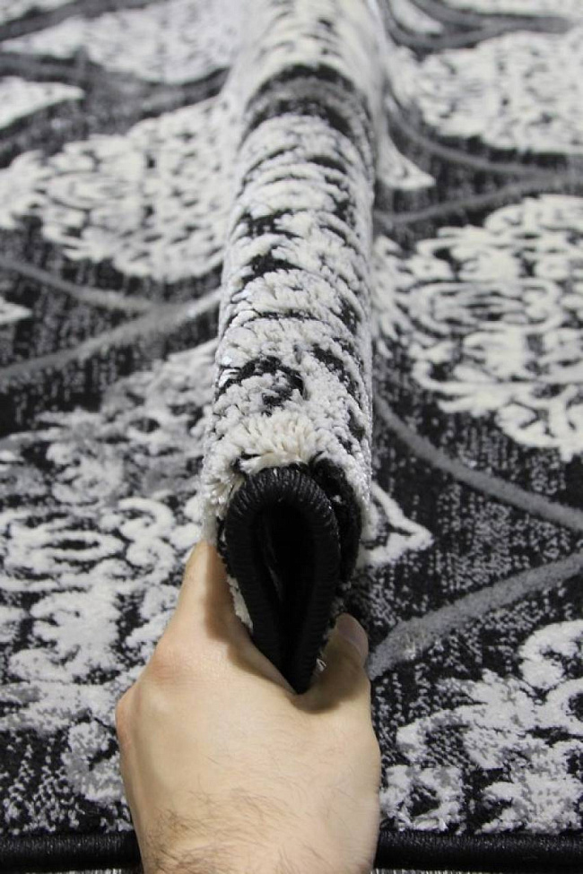 Коротко: «Ковер Elite 23120 090» (Elite, MERINOS, Турция) — ковер для дома, гостиной. материал: полиэстер, стиль: в современном стиле, цвет: серый, черный, ворс: 12 мм, плотность: 624000 точек/м², основа: джутовая, ориентирован на классическую подачу, страна производства: Турция.