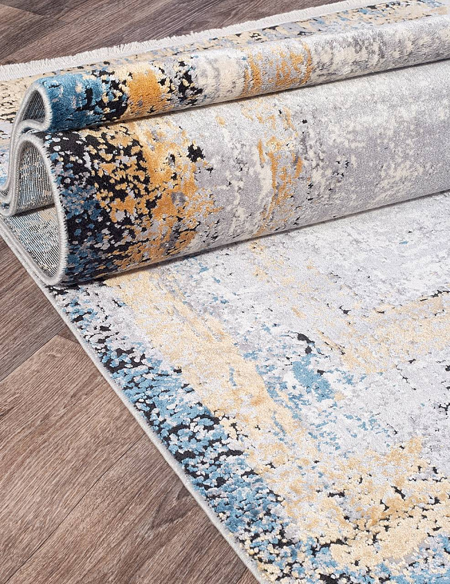 Коротко: «Ковер ERVA 18126 GOLD / GRAY» (ERVA, IPEK MEKIK, Турция) — ковер для дома, гостиной. материал: вискоза 70% + Акрил 30%, стиль: в современном стиле, цвет: серый, бежевый, синий, ворс: 8 мм, плотность: 1260000 точек/м², основа: хлопок, подходит для современного интерьера, страна производства: Турция.