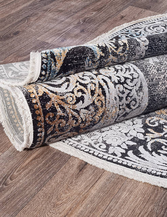 Коротко: «Ковер ERVA 18131 GRAY / BLACK Овал» (ERVA, IPEK MEKIK, Турция) — ковер для дома, гостиной. материал: вискоза 70% + Акрил 30%, стиль: в классическом стиле, цвет: серый, черный, ворс: 8 мм, плотность: 1260000 точек/м², основа: хлопок, ориентирован на классическую подачу, страна производства: Турция.