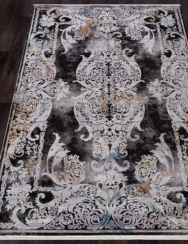 Коротко: «Ковер ERVA 18131 GRAY / BLACK» (ERVA, IPEK MEKIK, Турция) — ковер для дома, гостиной. материал: вискоза 70% + Акрил 30%, стиль: в классическом стиле, цвет: черный, серый, ворс: 8 мм, плотность: 1260000 точек/м², основа: хлопок, ориентирован на классическую подачу, страна производства: Турция.