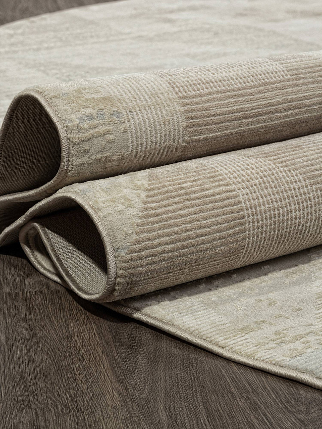 Этот ковер хорошо работает в современном интерьере, где важны чистая визуальная логика, фактура и умеренный декоративный акцент без перегруженности деталями.