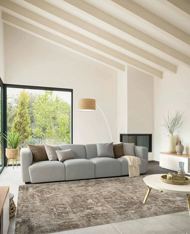 Этот ковер хорошо работает в современном интерьере, где важны чистая визуальная логика, фактура и умеренный декоративный акцент без перегруженности деталями.
