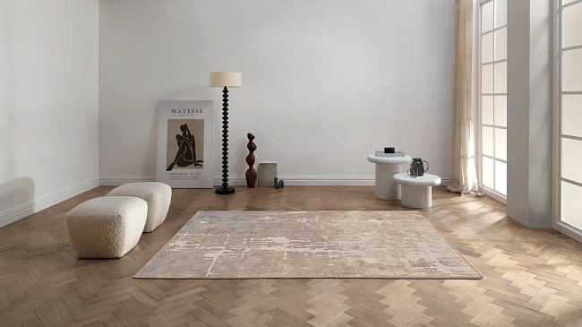 Коротко: «Ковер Farashe 0886 497560» (Farashe, VERBATEX) — ковер для прикроватной зоны, дома. материал: 95% Вискоза + 5% Полиэстер, стиль: в современном стиле, цвет: бежевый, ворс: 3.5 мм, плотность: 820000 точек/м², основа: джутовая, подходит для современного интерьера, страна производства: Бельгия.