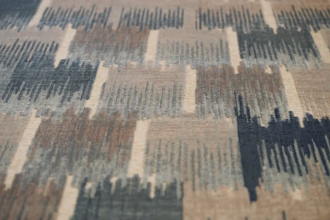 Коротко: «Ковер Farashe 1004 497440» (Farashe, VERBATEX) — ковер для прикроватной зоны, дома. материал: 95% Вискоза + 5% Полиэстер, стиль: в современном стиле, цвет: серый, бежевый, синий, ворс: 3.5 мм, плотность: 820000 точек/м², основа: джутовая, подходит для современного интерьера, страна производства: Бельгия.