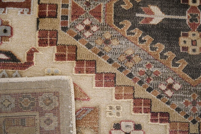 Коротко: «Ковер Farashe 1170 475440» (Farashe, VERBATEX) — ковер для прикроватной зоны, дома. материал: 95% Вискоза + 5% Полиэстер, стиль: в стиле бохо, цвет: кремовый, бежевый, коричневый, ворс: 3.5 мм, плотность: 820000 точек/м², основа: джутовая, может работать как интерьерный акцент, страна производства: Бельгия.