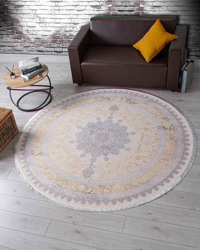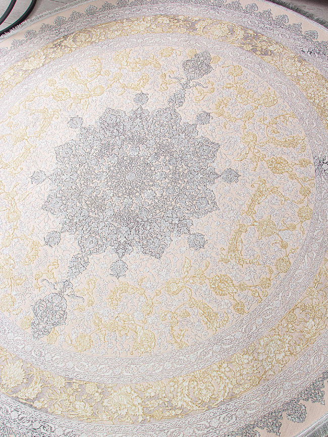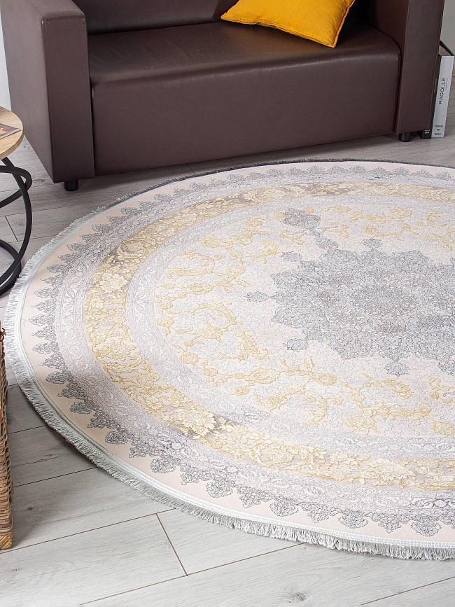 Коротко: «Ковер FARSI 1200 127090 000 Круг» (FARSI 1200, IRANOS, Иран) — ковер для дома, гостиной. материал: акрил, стиль: в классическом стиле, цвет: кремовый, бежевый, серый, ворс: 7 мм, плотность: 3600000 точек/м², основа: хлопок, ориентирован на классическую подачу, страна производства: Иран.