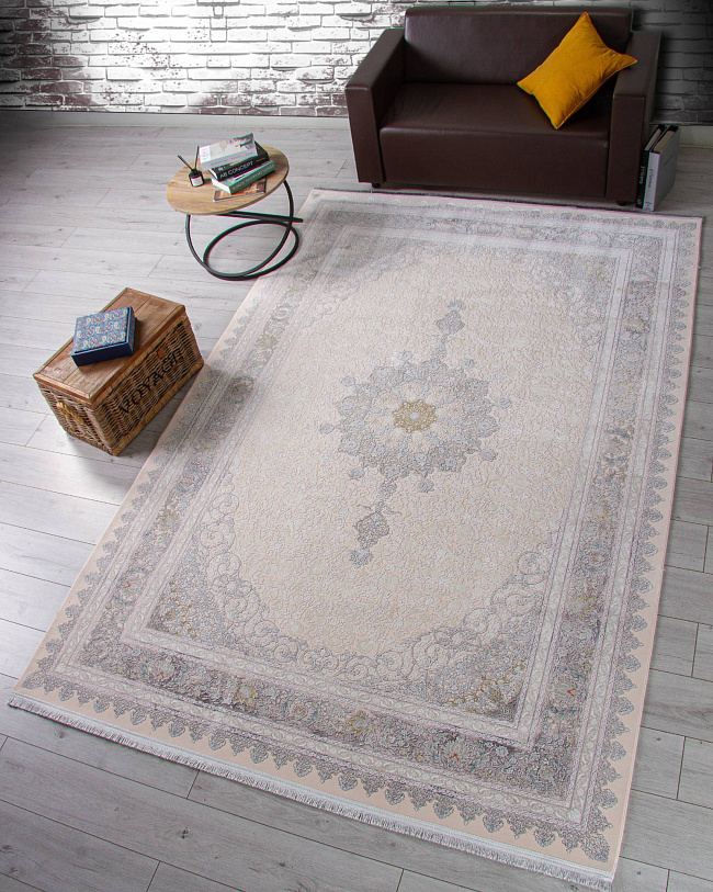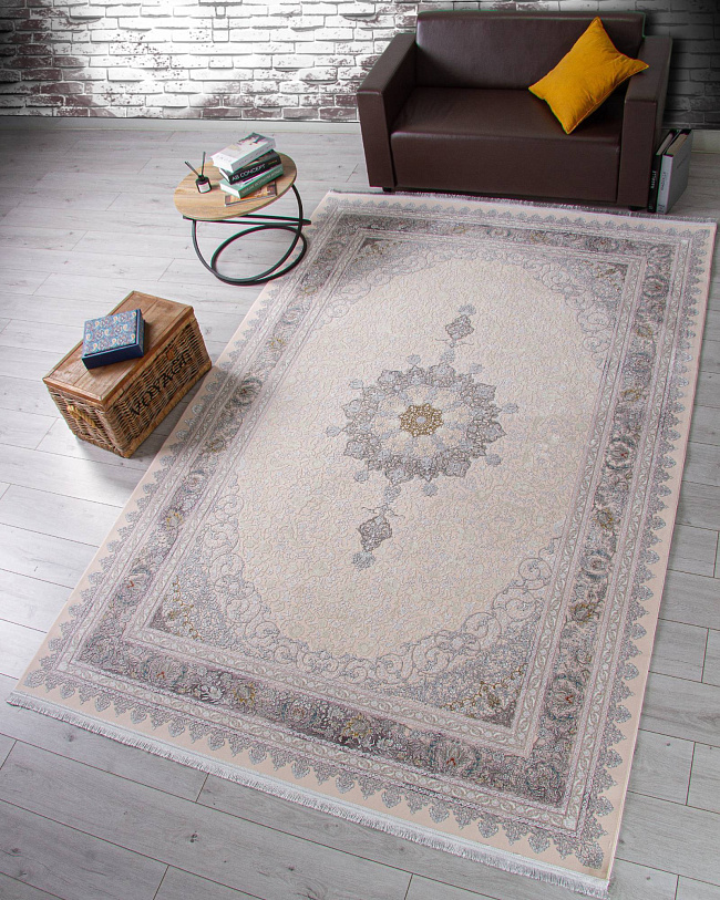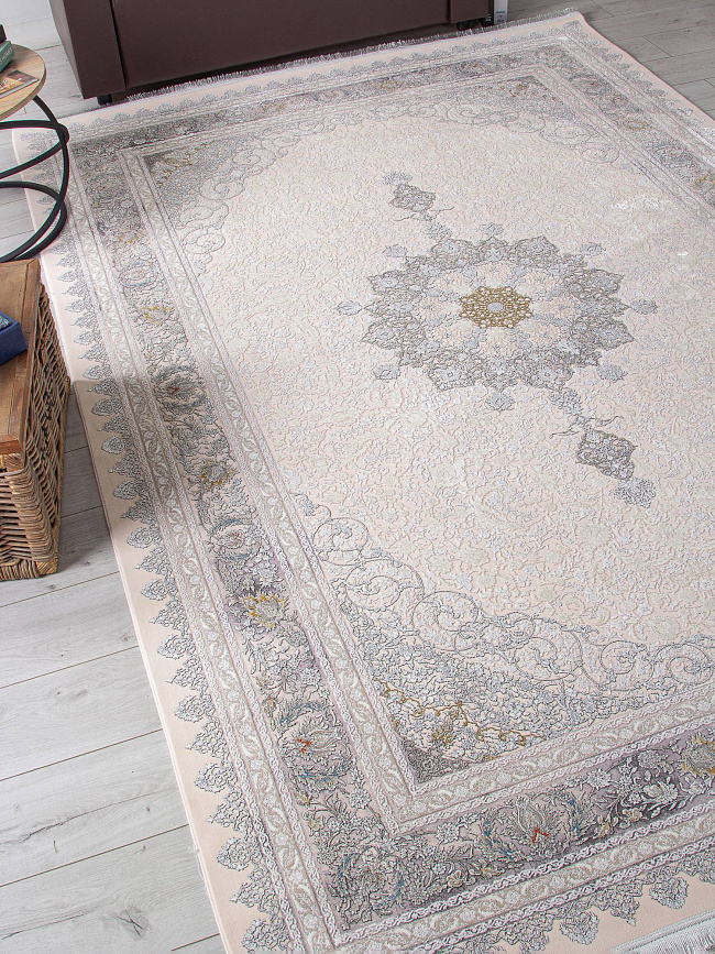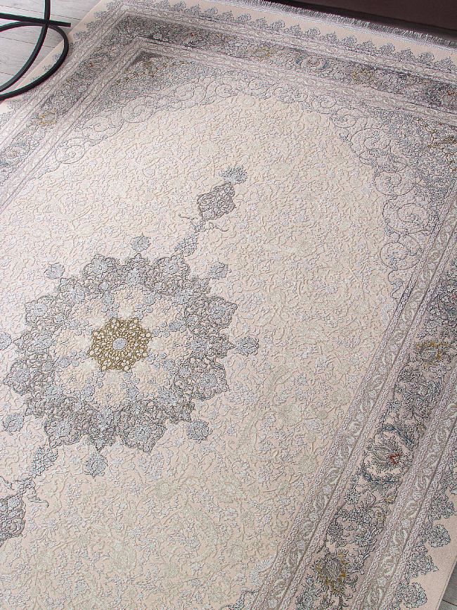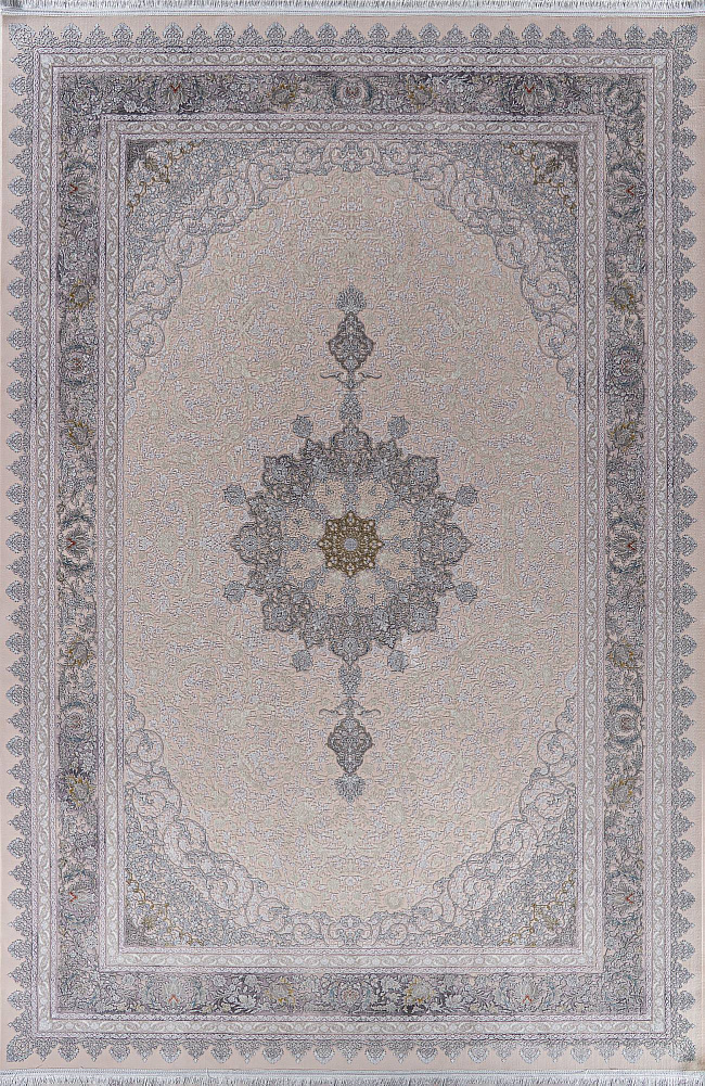 Коротко: «Ковер FARSI 1200 127091 000» (FARSI 1200, IRANOS, Иран) — ковер для дома, гостиной. материал: акрил, стиль: в классическом стиле, цвет: кремовый, серый, бежевый, ворс: 7 мм, плотность: 3600000 точек/м², основа: хлопок, ориентирован на классическую подачу, страна производства: Иран.