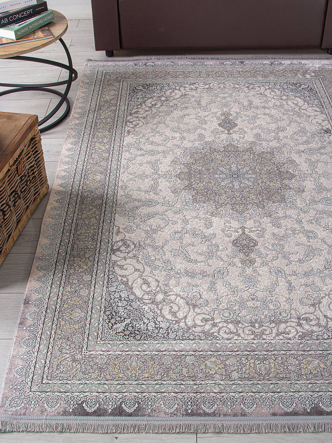 Коротко: «Ковер FARSI 1200 127094 000» (FARSI 1200, IRANOS, Иран) — ковер для дома, гостиной. материал: акрил, стиль: в классическом стиле, цвет: кремовый, серый, многоцветный, ворс: 7 мм, плотность: 3600000 точек/м², основа: хлопок, ориентирован на классическую подачу, страна производства: Иран.