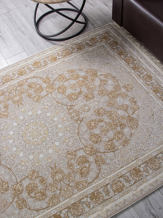 Коротко: «Ковер FARSI 1200 G142 CFI 000» (FARSI 1200, IRANOS, Иран) — ковер для дома, гостиной. материал: акрил, стиль: в классическом стиле, цвет: серый, бежевый, ворс: 7 мм, плотность: 3600000 точек/м², основа: хлопок, ориентирован на классическую подачу, страна производства: Иран.