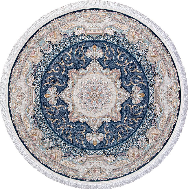Коротко: «Ковер FARSI 1500 144 DARK BLUE Круг» (FARSI 1500, IRANOS, Иран) — ковер для дома, гостиной. материал: акрил, стиль: в классическом стиле, цвет: бежевый, кремовый, серый, синий, ворс: 7 мм, плотность: 4500000 точек/м², основа: хлопок, ориентирован на классическую подачу, страна производства: Иран.