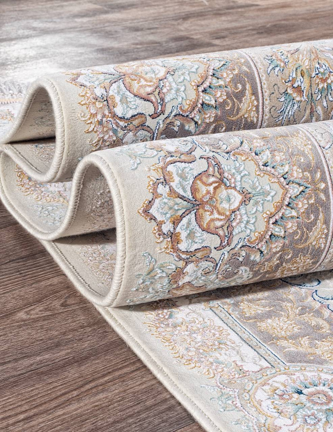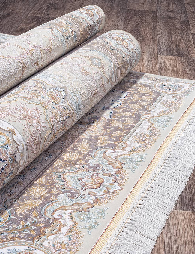 Коротко: «Ковер FARSI 1500 227 CREAM» (FARSI 1500, IRANOS, Иран) — ковер для дома, гостиной. материал: акрил, стиль: в классическом стиле, цвет: бежевый, кремовый, коричневый, голубой, ворс: 7 мм, плотность: 4500000 точек/м², основа: хлопок, ориентирован на классическую подачу, страна производства: Иран.