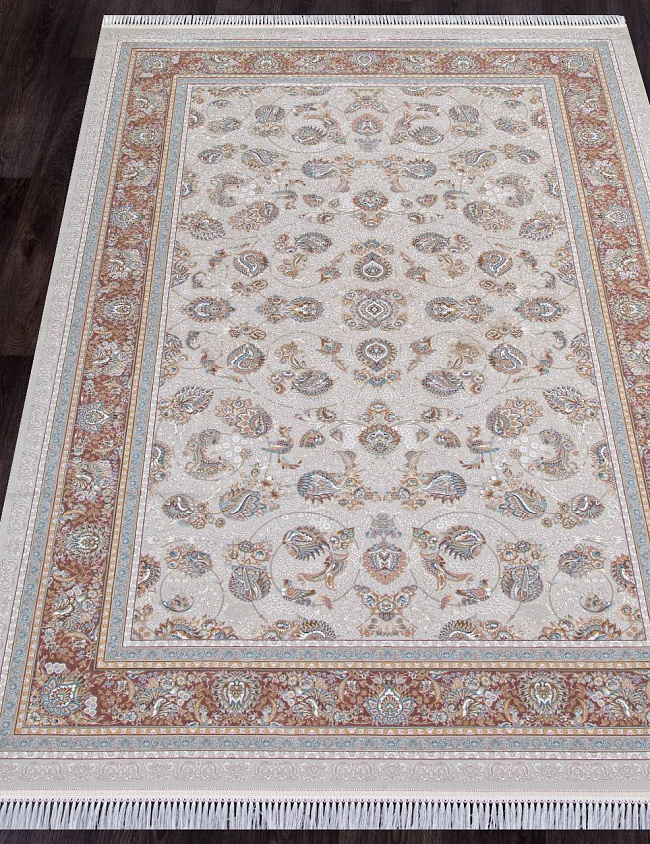 Коротко: «Ковер FARSI 1500 G136 CREAM» (FARSI 1500, IRANOS, Иран) — ковер для дома, гостиной. материал: акрил, стиль: в классическом стиле, цвет: кремовый, коричневый, ворс: 7 мм, плотность: 4500000 точек/м², основа: хлопок, ориентирован на классическую подачу, страна производства: Иран.
