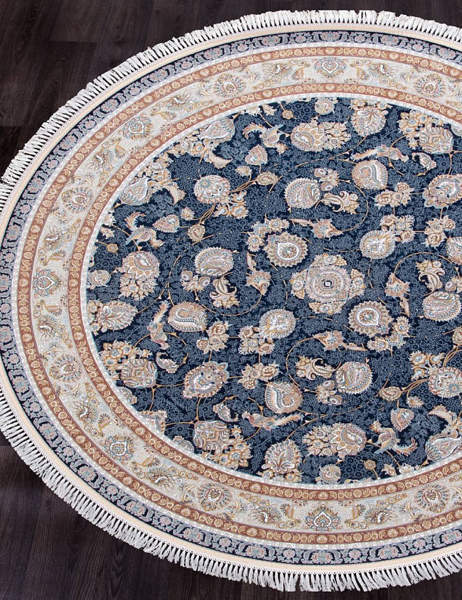 Коротко: «Ковер FARSI 1500 G136 DARK BLUE Круг» (FARSI 1500, IRANOS, Иран) — ковер для дома, гостиной. материал: акрил, стиль: в классическом стиле, цвет: синий, бежевый, коричневый, ворс: 7 мм, плотность: 4500000 точек/м², основа: хлопок, ориентирован на классическую подачу, страна производства: Иран.