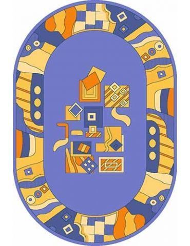 Коротко: «Ковер FIRIZE 35-1 FULYA BLUE Овал» (FIRIZE 35-1, MERINOS) — ковер для дома, гостиной. материал: полипропилен, стиль: современный, Модерн, цвет: синий, желтый, оранжевый, тип ворса: Средний – 6-12 мм, 10 мм, плотность: 490000 точек/м², основа: джутовая, подходит для современного интерьера, страна производства: Россия.