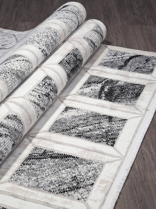 Коротко: «Ковер FORT 04161A CREAM / WHITE» (FORT, SIRMA, Турция) — ковер для дома, гостиной. материал: полиэстер + Полипропилен, стиль: в современном стиле, цвет: серый, бежевый, черный, ворс: 10 мм, плотность: 526000 точек/м², основа: хлопок, подходит для современного интерьера, страна производства: Турция.