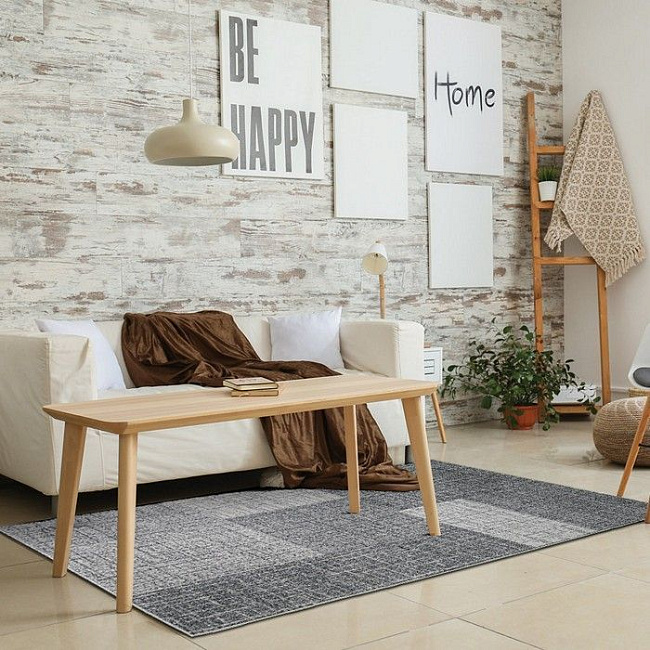 Этот ковер хорошо работает в современном интерьере, где важны чистая визуальная логика, фактура и умеренный декоративный акцент без перегруженности деталями.