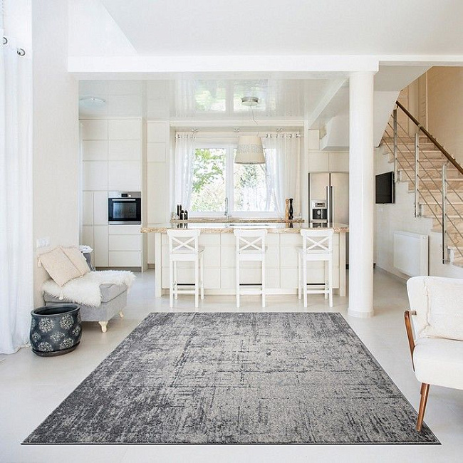 Этот ковер хорошо работает в современном интерьере, где важны чистая визуальная логика, фактура и умеренный декоративный акцент без перегруженности деталями.