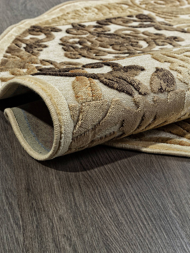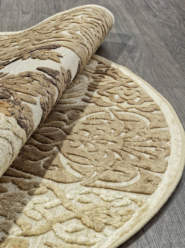 Коротко: «Ковер GENOVA 938009 626260 Круг V» (Genova, Ragolle) — ковер для дома, гостиной. материал: вискоза, стиль: в современном стиле, цвет: бежевый, кремовый, ворс: 5 мм, плотность: 860000 точек/м², основа: хлопок, подходит для современного интерьера, страна производства: Бельгия.