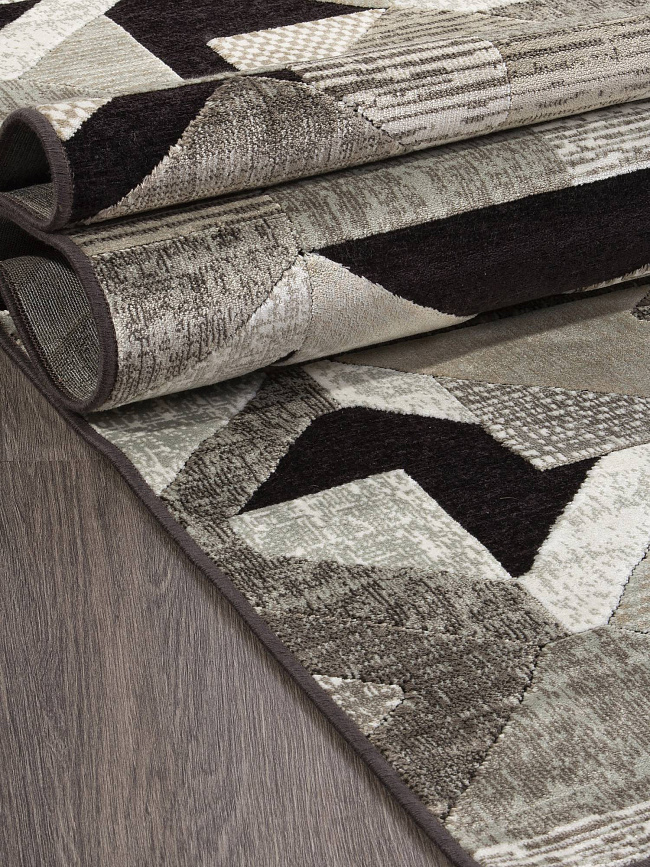 Коротко: «Ковер GENOVA 938162 353530 V» (Genova, Ragolle) — ковер для дома, гостиной. материал: вискоза, стиль: в современном стиле, цвет: серый, черный, ворс: 5 мм, плотность: 860000 точек/м², основа: хлопок, подходит для современного интерьера, страна производства: Бельгия.