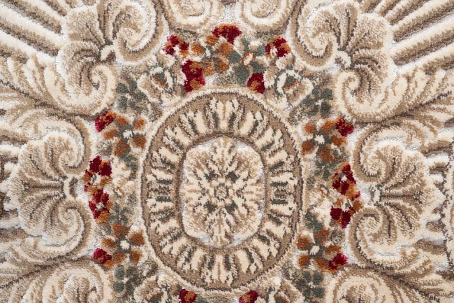 Коротко: «Ковер GENOVA Овал 38388 6262 60» (Genova UF oval round, Ragolle) — ковер для дома, гостиной. материал: вискоза 80% + Акрил 20%, стиль: в классическом стиле, цвет: бежевый, ворс: 5 мм, плотность: 860000 точек/м², основа: джутовая, ориентирован на классическую подачу, страна производства: Бельгия.