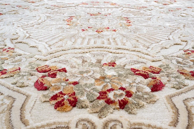 Плотность: 860000 ворсовых точек/м2. Высокая плотность особенно ценится в моделях, где важны аккуратность рисунка и сохранение внешнего вида со временем.