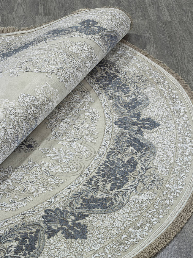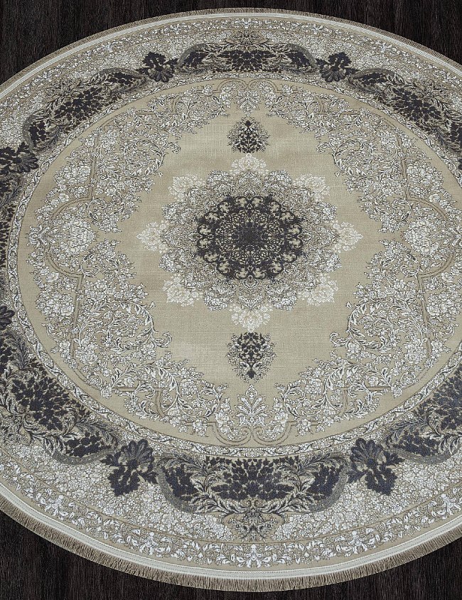 Коротко: «Ковер HADI 122221 000 Круг» (HADI, IRANOS, Иран) — ковер для дома, гостиной. материал: акрил, стиль: в классическом стиле, цвет: серый, бежевый, ворс: 12 мм, плотность: 3600000 точек/м², основа: хлопок, ориентирован на классическую подачу, страна производства: Иран.