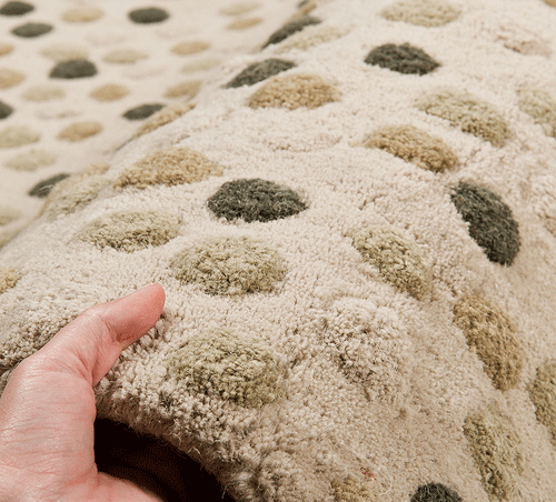 Плотность: 450000 ворсовых точек/м2. Повышенный показатель, который обычно связан с более стабильной структурой и хорошей читаемостью рисунка.