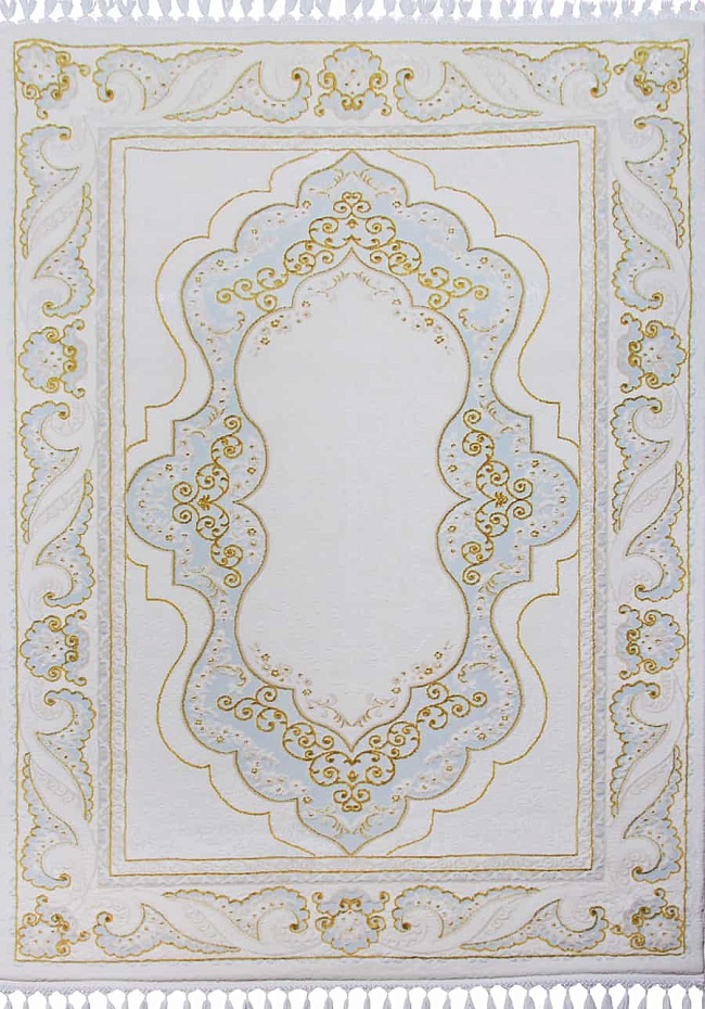 Коротко: «Ковер HUNKAR 08075A BLUE / GOLD» (HUNKAR, KARMEN HALI, Турция) — ковер для дома, гостиной. материал: акрил + Полиэстер, стиль: в классическом стиле, цвет: белый, голубой, золотой, ворс: 13 мм, плотность: 613200 точек/м², основа: хлопок, ориентирован на классическую подачу, страна производства: Турция.