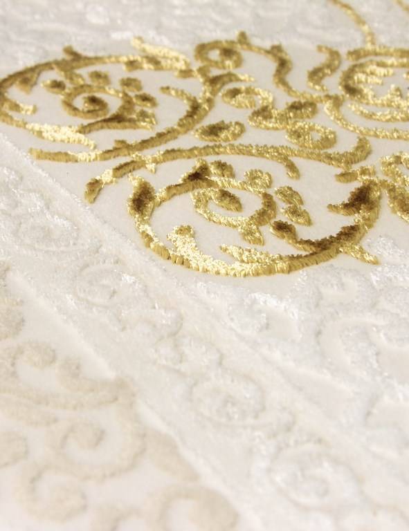 Коротко: «Ковер HUNKAR 7852 GOLD / WHITE» (HUNKAR) — ковер. стиль: в классическом стиле, ворс: 13 мм, плотность: 613200 точек/м², основа: хлопок, ориентирован на классическую подачу, страна производства: Турция.