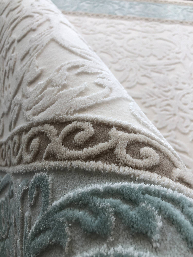 Коротко: «Ковер HUNKAR D6513A TURKUAZ / BEYAZ» (HUNKAR) — ковер. стиль: в современном стиле, ворс: 13 мм, плотность: 613200 точек/м², основа: хлопок, подходит для современного интерьера, страна производства: Турция.