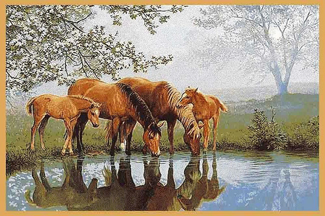 Коротко: «Ковер HUNNU сувенирный 6S1027 82 водопой» (HUNNU сувенирный, ERDENET) — ковер для дома, гостиной. материал: 100% шерсть, цвет: разноцветный, ворс: 10.5 мм, плотность: 680000 точек/м², основа: джутовая, страна производства: Монголия.
