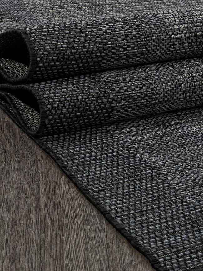 Коротко: «Ковер-циновка INDIGO S117 D. GRAY-BLACK» (INDIGO, MERINOS) — ковер для дома, гостиной. материал: полипропилен, стиль: в современном стиле, цвет: серый, черный, тип ворса: Безворсовый, Циновка, плотность: 172800 точек/м², основа: джут, подходит для современного интерьера, страна производства: Россия.