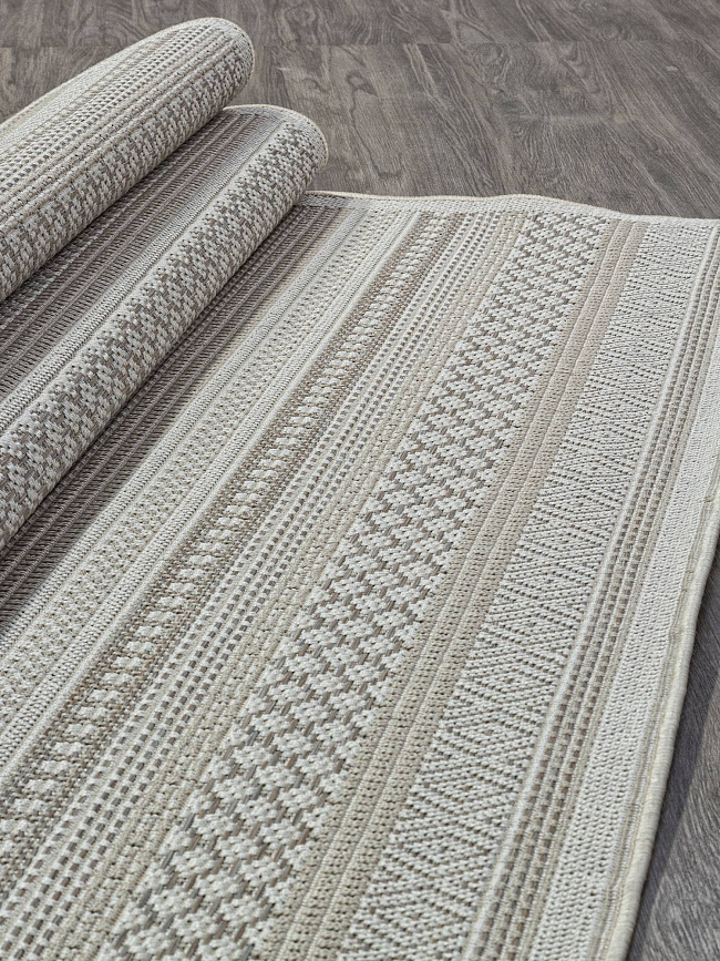 Коротко: «Ковер-циновка INDIGO S122 BEIGE» (INDIGO, MERINOS) — ковер для дома, гостиной. материал: полипропилен, стиль: в стиле бохо, цвет: серый, бежевый, тип ворса: Безворсовый, Циновка, плотность: 172800 точек/м², основа: джут, может работать как интерьерный акцент, страна производства: Россия.