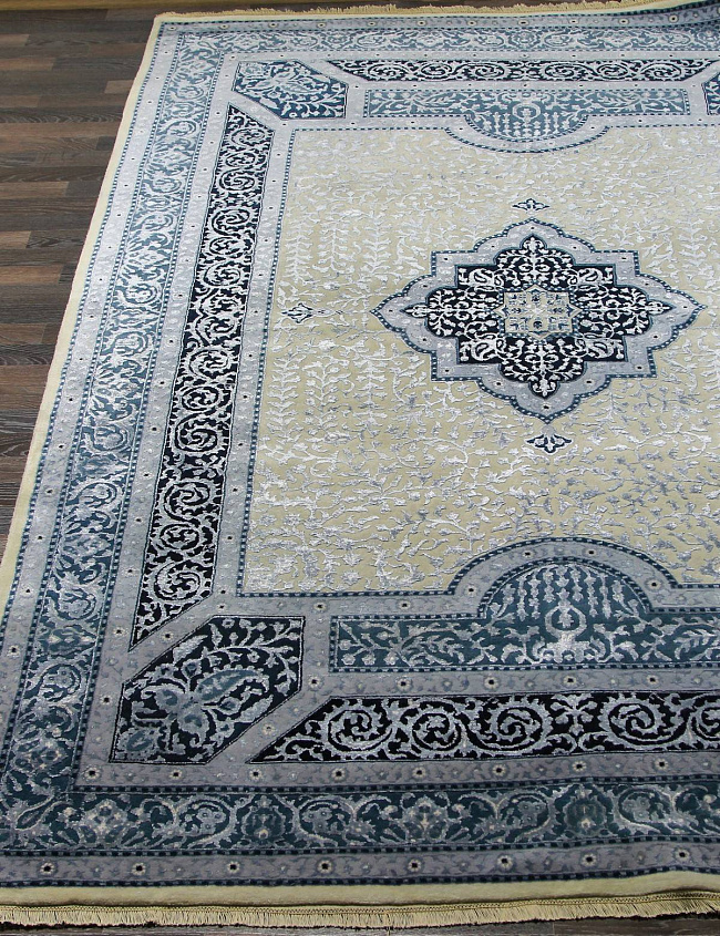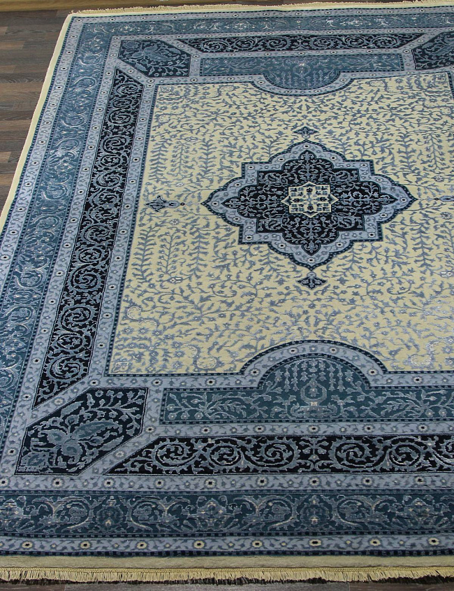 Коротко: «Ковер Индия шерсть шелк 14x14 867 IVORY/D. BLUE» (Индия шерсть шелк 14x14, INDIAOS, Индия) — ковер для дома, гостиной. материал: шерсть + Шелк, стиль: в классическом стиле, цвет: синий, кремовый, тип ворса: Средний – 6-12 мм, основа: хлопок, ориентирован на классическую подачу, страна производства: Индия.