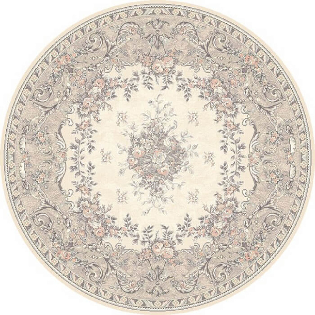 Коротко: «Ковер ISFAHAN Dafne alabaster Цветы КРУГ» (ISFAHAN AGNELLA round UF, Agnella) — ковер для дома, комнаты. материал: шерсть, стиль: английский, Классический, цвет: бежево-розовый, ворс: 8 мм, плотность: 496000 точек/м², основа: джутовая, ориентирован на классическую подачу, страна производства: Польша.