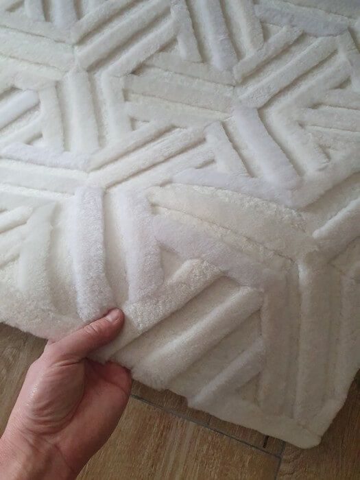 Высота ворса: 15 мм. Более высокий ворс делает ковер мягче по ощущениям и помогает создать более уютную атмосферу, особенно в спальне и зоне отдыха.