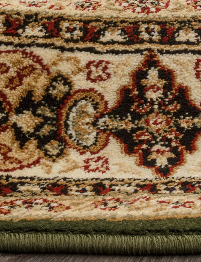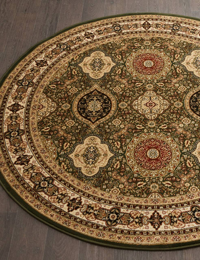 Коротко: «Ковер IZMIR d101 GREEN Круг» (IZMIR) — ковер. стиль: в классическом стиле, ворс: 10 мм, плотность: 400000 точек/м², основа: джут, ориентирован на классическую подачу, страна производства: Россия.