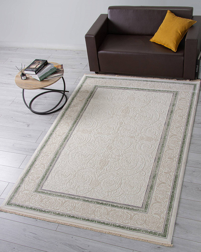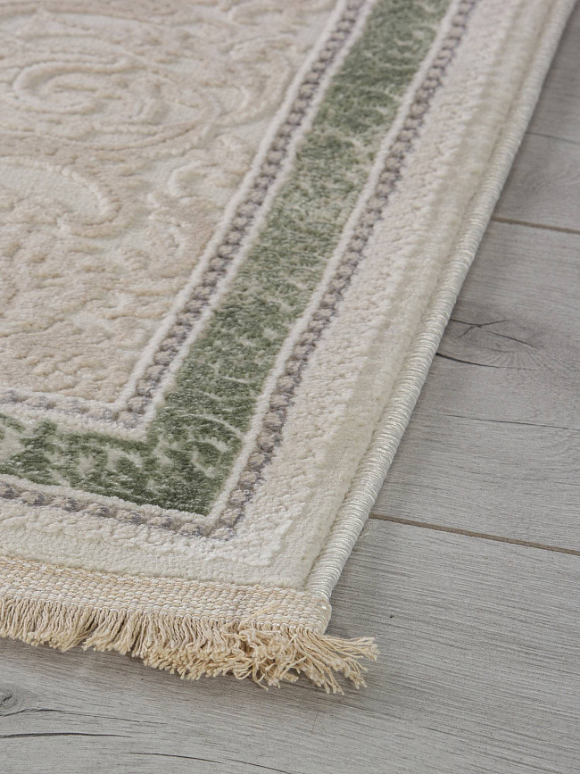 Коротко: «Ковер Jasmine 30896D CREAM / CREAM» (Jasmine, DURKAR, Турция) — ковер для дома, гостиной. материал: полипропилен + Полиэстер, стиль: в классическом стиле, цвет: кремовый, зеленый, ворс: 10 мм, плотность: 768000 точек/м², основа: хлопок, ориентирован на классическую подачу, страна производства: Турция.