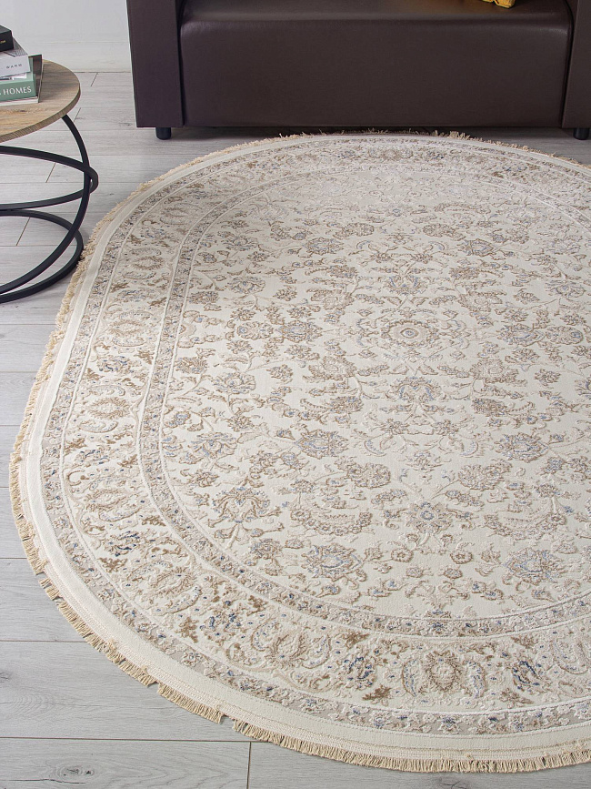 Коротко: «Ковер Jasmine 35826Z CREAM / BEIGE Овал» (Jasmine, DURKAR, Турция) — ковер для дома, гостиной. материал: полипропилен + Полиэстер, стиль: в классическом стиле, цвет: кремовый, бежевый, ворс: 10 мм, плотность: 768000 точек/м², основа: хлопок, ориентирован на классическую подачу, страна производства: Турция.
