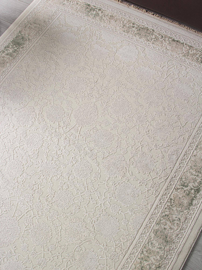 Коротко: «Ковер Jasmine-A 35897B CREAM / CREAM» (Jasmine, DURKAR, Турция) — ковер для дома, гостиной. материал: полипропилен + Полиэстер, стиль: в классическом стиле, цвет: кремовый, зеленый, ворс: 10 мм, плотность: 768000 точек/м², основа: хлопок, ориентирован на классическую подачу, страна производства: Турция.