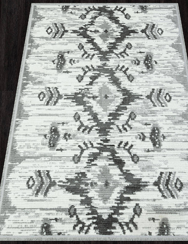 Коротко: «Ковер JOLI A940AW P. WHITE / L. GREY» (JOLI, MILAT, Турция) — ковер для дома, гостиной. материал: полиэстер, стиль: в современном стиле, цвет: белый, серый, ворс: 9 мм, плотность: 160000 точек/м², основа: джут, подходит для современного интерьера, страна производства: Турция.