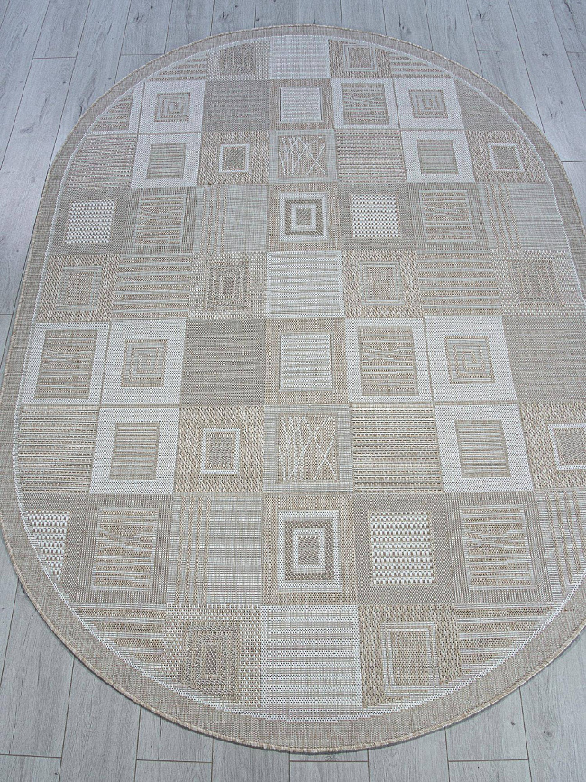 Коротко: «Ковер KAIR S138 BEIGE Овал» (KAIR, MERINOS) — ковер для дома, гостиной. материал: полипропилен, стиль: в современном стиле, цвет: бежевый, тип ворса: Безворсовый, Циновка, плотность: 128000 точек/м², основа: джут, подходит для современного интерьера, страна производства: Россия.