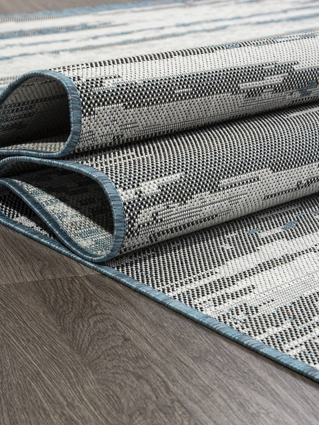 Коротко: «Ковер-циновка KAIR S143 BLUE» (KAIR, MERINOS) — ковер для дачи, кухни. материал: полипропилен, стиль: в современном стиле, цвет: серый, синий, тип ворса: Безворсовый, Циновка, плотность: 128000 точек/м², основа: джут, подходит для современного интерьера, страна производства: Россия.