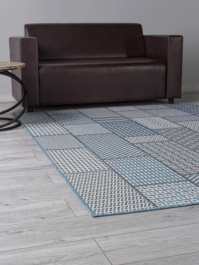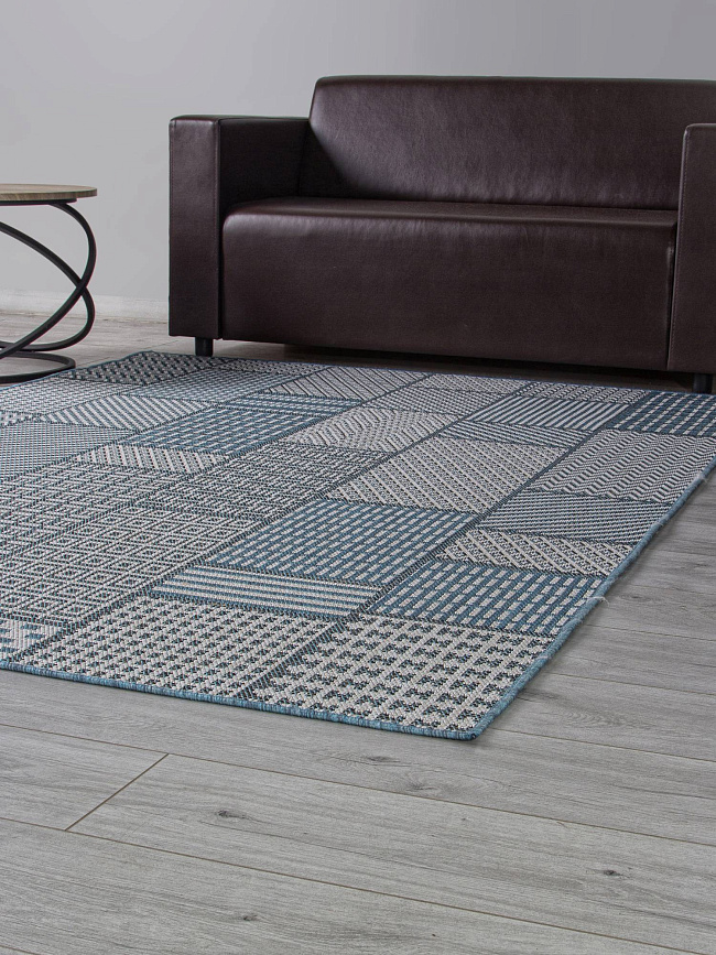 Коротко: «Ковер KAIR S160 BLUE» (KAIR, MERINOS) — ковер для дома, гостиной. материал: полипропилен, стиль: в современном стиле, цвет: серый, синий, тип ворса: Безворсовый, Циновка, плотность: 128000 точек/м², основа: джут, подходит для современного интерьера, страна производства: Россия.
